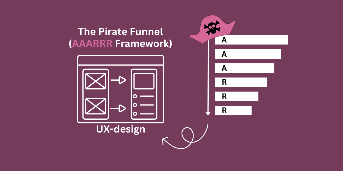Om te beginnen kies je een methode om je klantreis in kaart te brengen: bijvoorbeeld de Pirate funnel (‘piratentrechter’), een populair framework voor het optimaliseren van het gebruikerstraject en het verbeteren van de websiteprestaties. De piratentrechter bestaat uit zes fasen (AAARRR): Awareness, Acquisition, Activation, Retention, Revenue en Referral. Je kunt hem ook iets versimpelen naar deze 3 stappen: discover, consider, decide, maar vergeet dan niet om ook naar retentie en ambassadeurschap (als vierde fase) te kijken. Wanneer je de Pirate Funnel voor jouw klant opstelt, dan identificeer je specifiek de online acties die nodig zijn om de klant door elke fase van de trechter te leiden. Zodra deze acties zijn gedefinieerd, is de volgende stap dit te vertalen naar het UX-design van de website. Dit is cruciaal om de gewenste interactie met je doelgroep en beoogde resultaten te bereiken.